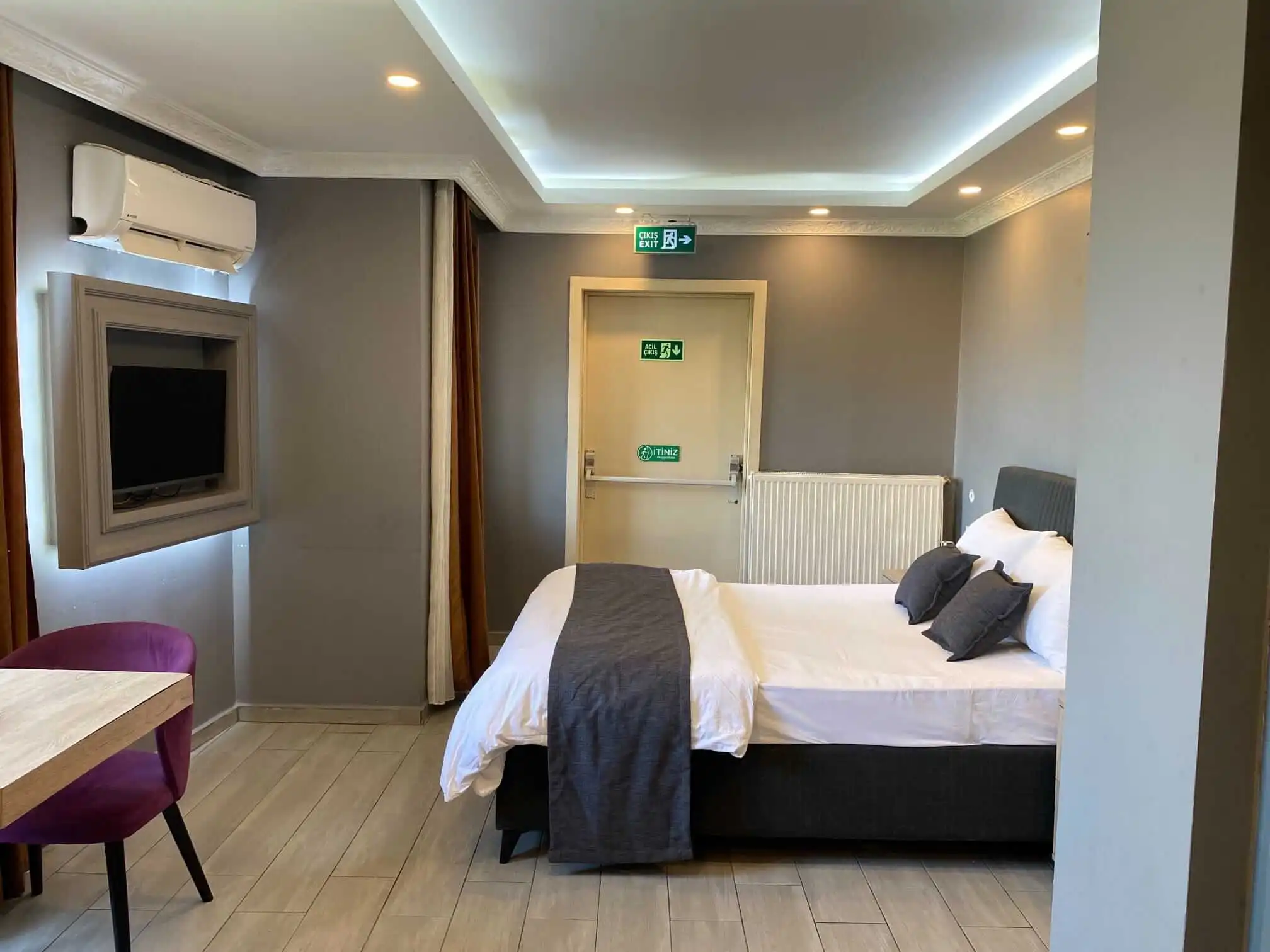 Odamızda ücretsiz Wi-Fi, klima, 7/24 sıcak su, Smart TV ve temel ihtiyaçlara uygun donanım bulunmaktadır. Hijyenik ve düzenli olarak temizlenen odamız, güvenli ve huzurlu bir konaklama imkanı sunar. Ayrıca ücretsiz otopark avantajı ile araçlı misafirlerimiz için büyük kolaylık sağlanmaktadır.